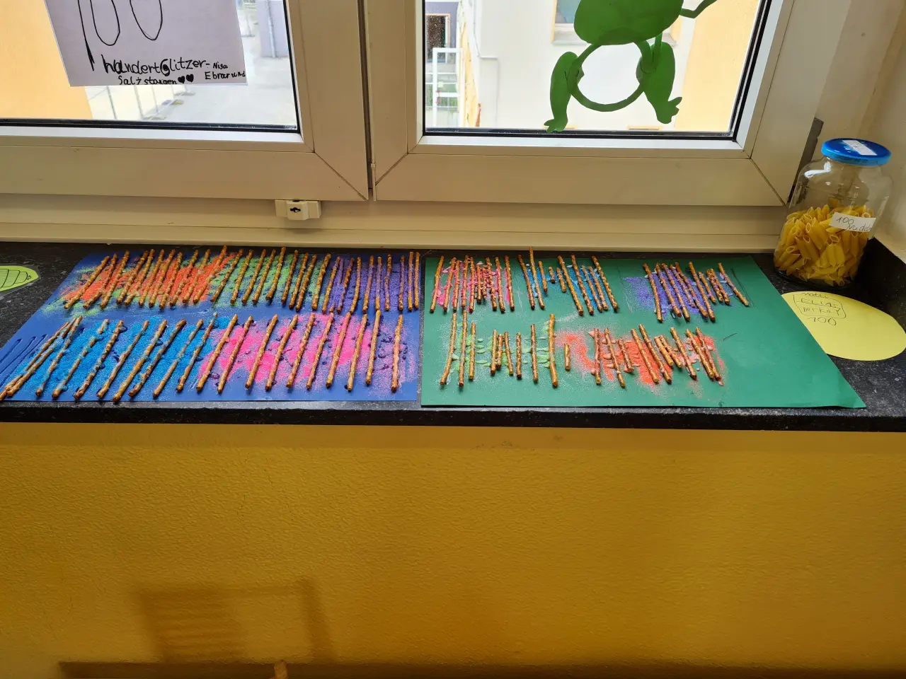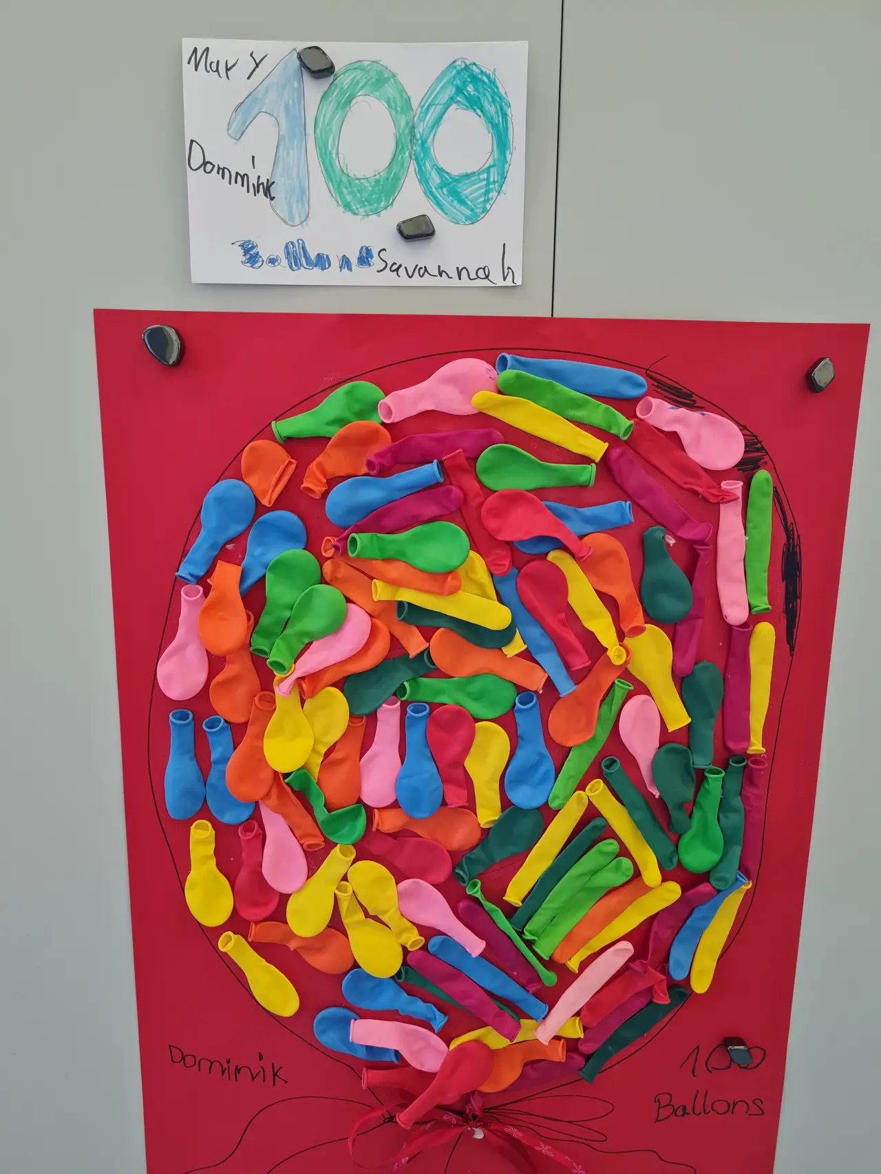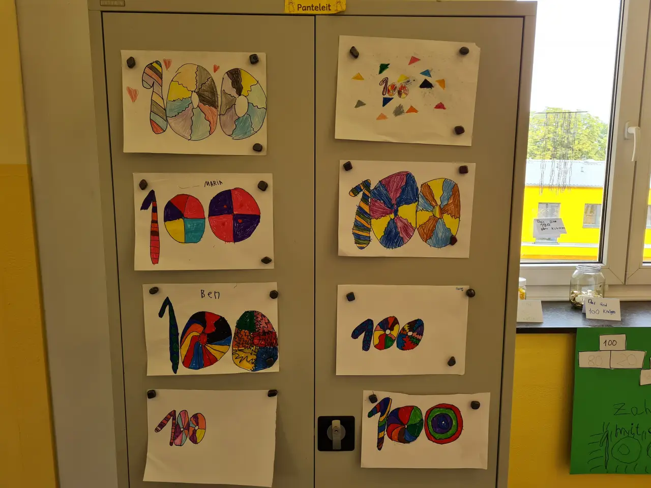 Im Mathematikunterricht haben die Kinder im Rahmen eines Kunst-Mathematik-Projektes sich mit der Zahl/Menge 100 beschäftigt.