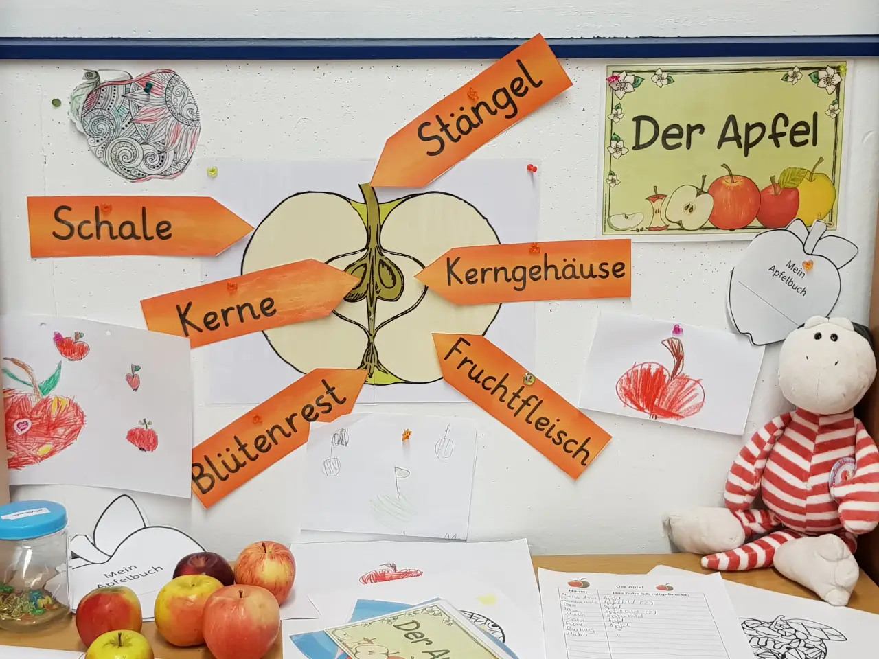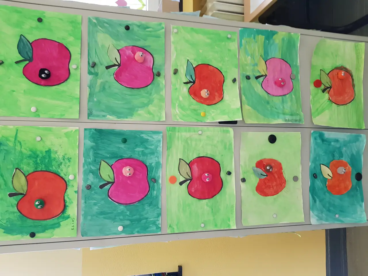 Die Herbstzeit ist auch Apfelzeit. Die Erstklässler haben sich intensiv mit dem Apfel beschäftigt. Sie können die Teile des Apfels nun benennen, wissen wie ein Apfeljahr aussieht und haben wunderschöne Apfel mit Wachsmalern und Wasserfarben gemalt.