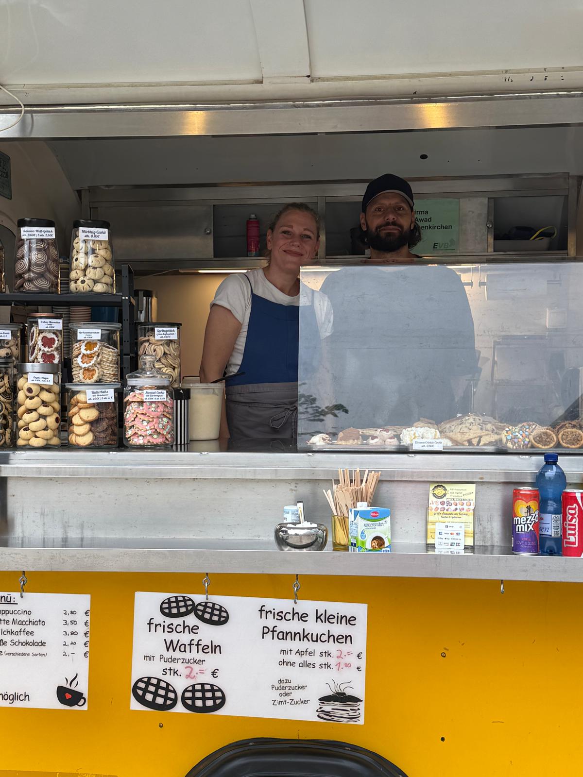 Währenddessen bereiteten Frau und Herr Awad köstlichen Kaffee, Waffeln, Apfelpfannkuchen und leckere Plätzchen und Naschwerk für unsere Gäste.