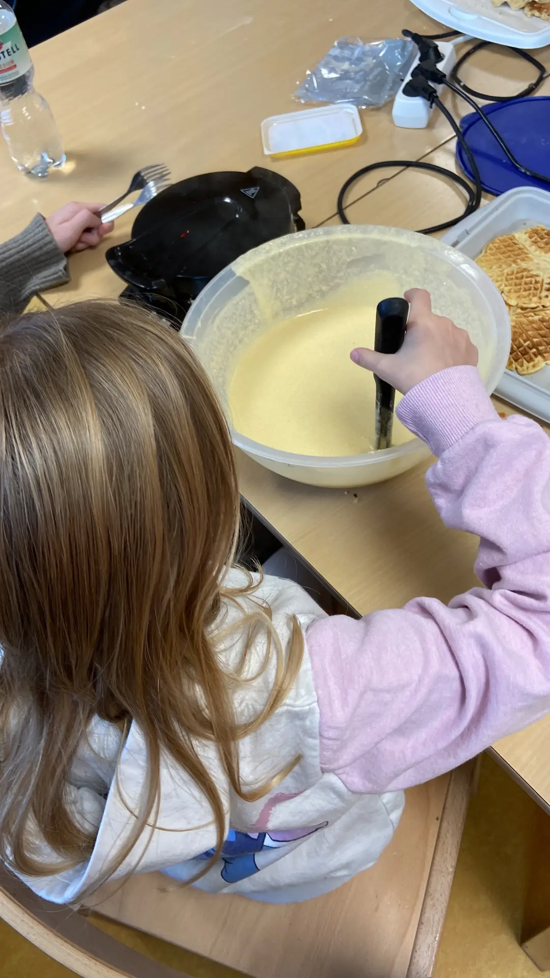 Mit Ihrer Unterstützung hat das OGS Team für das Weihnachtswunder insgesamt 1500 Euro Spendengelder einsammeln können. Haben Sie herzlichen Dank für den ausgesprochen leckeren Waffelteig! Unserem OGS Team danken wir für das Backen der Waffeln gemeinsam mit den Kindern! Wir haben uns die Waffeln schmecken lassen