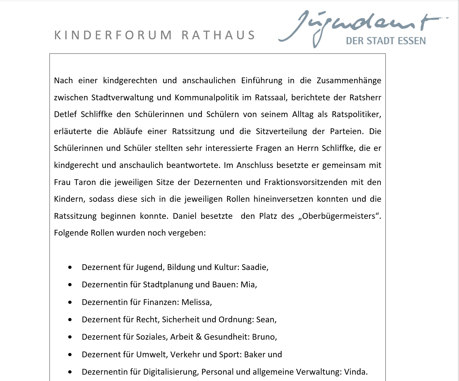 Die Klassen 4a und 4b haben an dem Programm "Kinderforum der Stadt Essen" teilgenommen.